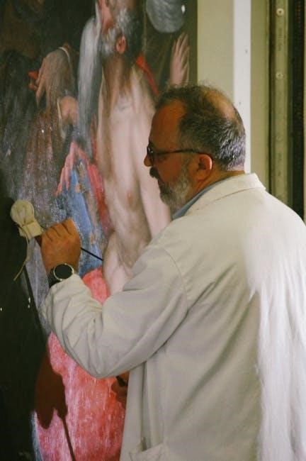 Guido Reni’s work exemplifies Baroque painting techniques‚ characterized by dramatic chiaroscuro and emotional intensity. His use of light and shadow creates dynamic compositions‚ while his vivid depictions of human emotion align with the Baroque emphasis on storytelling. Reni’s adherence to classical ideals‚ blended with Baroque drama‚ results in a distinctive style that captivates viewers and inspires crossword clues referencing his artistic mastery.